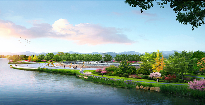 設(shè)計定位:以邵水自然風(fēng)光為基礎(chǔ),以地方時代文化為特色,以水景生態(tài)休閑為核心,兼有防洪功能的濱水綠地空間。